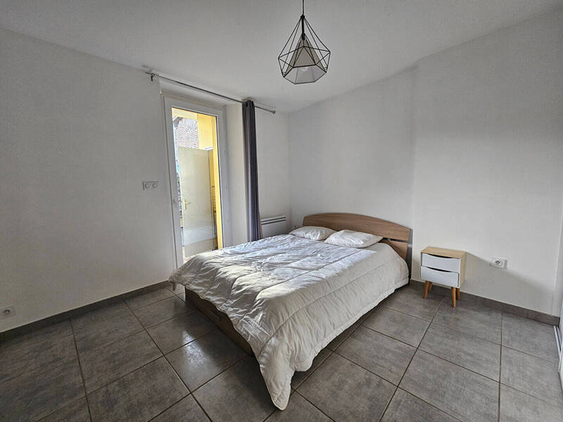 Il comprend une cuisine équipée ouverte sur le séjour, une chambre, une salle d'eau et un WC séparé ainsi qu'un balcon avec deux placard de rangement.